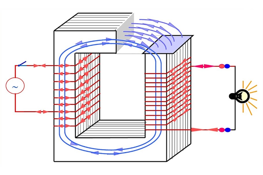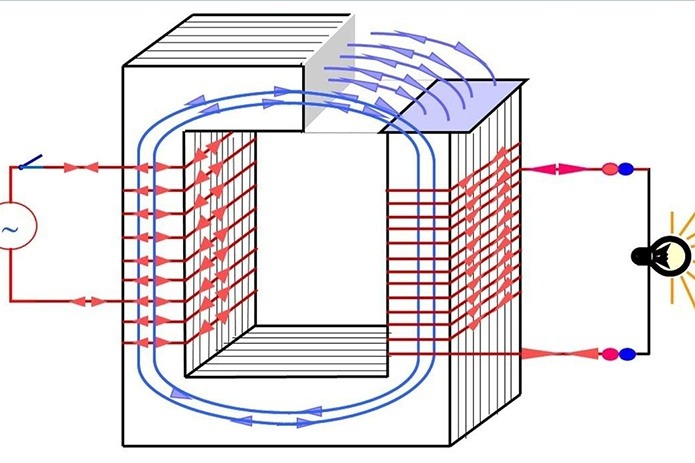 Cả việc hạ thấp và tăng áp đều dựa trên nguyên lý cảm ứng điện từ. cấp, it tạo ra từ trường biến thiên. số dây vòng mà ứng dụng đầu tiên sẽ tăng hoặc giảm.