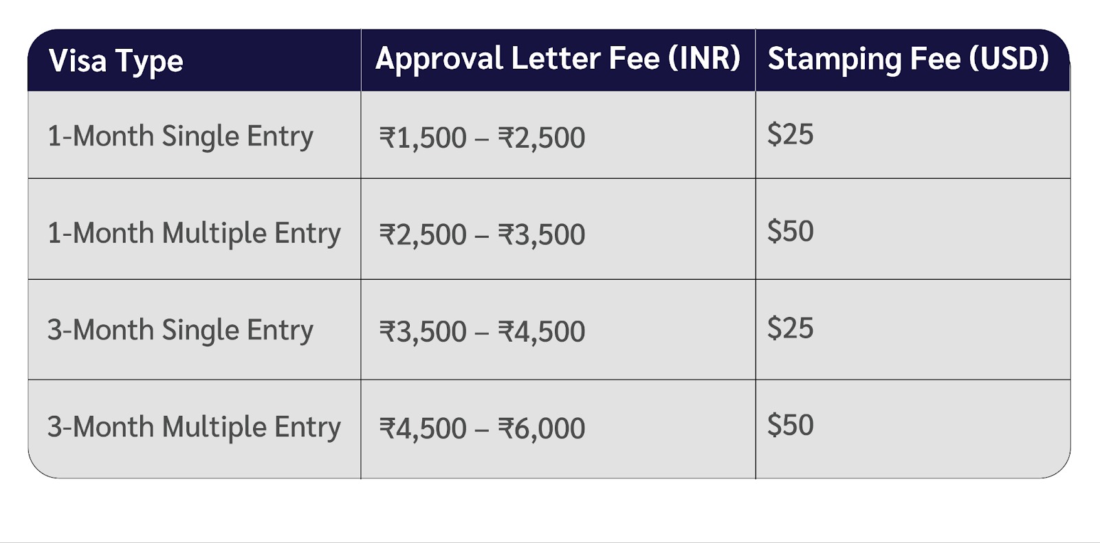 Visa type – Single-entry is usually less expensive than multiple-entry.
