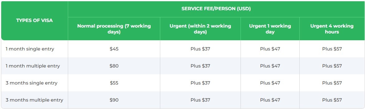Service fees – Agencies offering urgent Vietnam visa online may include additional charges.